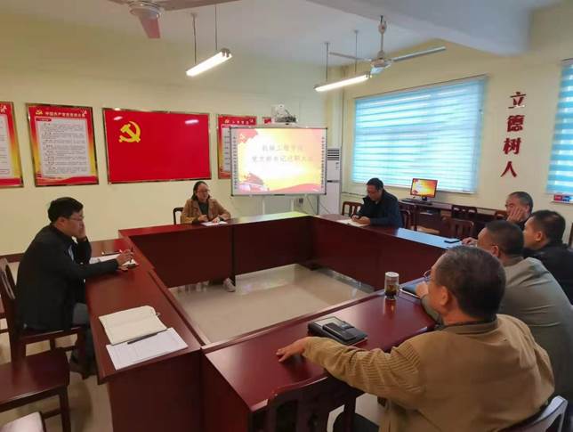 机械工程学院各党支部书记逐一进行述职。他们主要从思想建设、组织建设、制度建设、问题分析、下一步工作举措等几个方面汇报了支部党建工作开展情况。述职报告准备认真,总结成绩客观,分析问题实事求是,下一步打算目标明确。