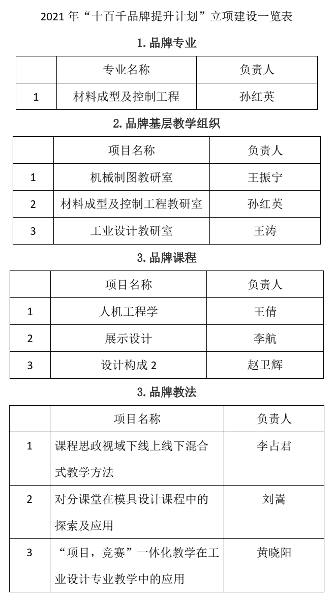 2021年“十百千品牌提升计划”立项建设一览表