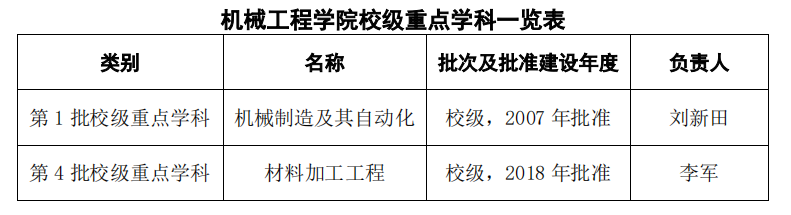 机械工程学院校级重点学科一览表