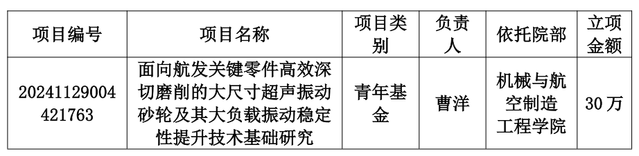 8月24日,国家自然科学基金委员会公布了2024年度国家自然科学基金集中申请受理期项目评审结果,我院曹洋老师获批国家自然科学基金青年基金立项资助,资助经费30万元。
