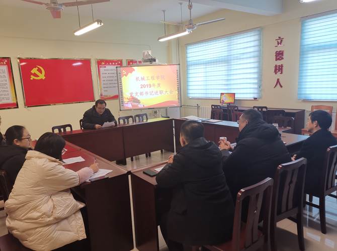 1230日上午,机械工程学院2019年度基层党支部书记述职大会在学院党员活动室进行。会议由党总支书记杨露露主持,学院领导班子成员、各支部书记、委员参加会议。